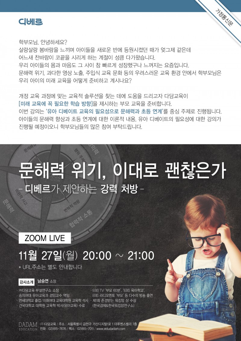 디베르 부모교육(Zoom) <문해력 위기, 이대로 괜찮은가>