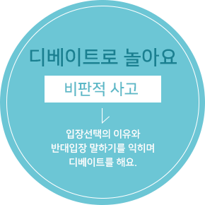 비판적 사고력을 키우게 됩니다. 아이의 눈높이에 맞는 디베이트 주제로