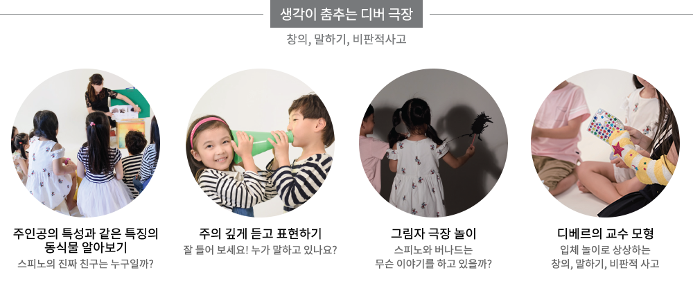 디베르는 만 2세~5세 유아를 대상으로 자신의 생각을 당당하게 말하고 깊이 있고 열린 사고를 할 수 있도록 디베르 멘토가 되어 함께 합니다.