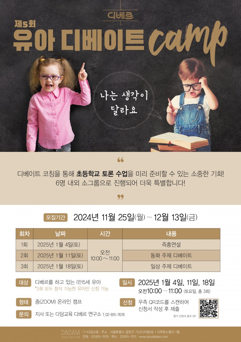 2025년 1월 4일부터 3주간 제5회 디베이트 캠프가 진행됩니다.