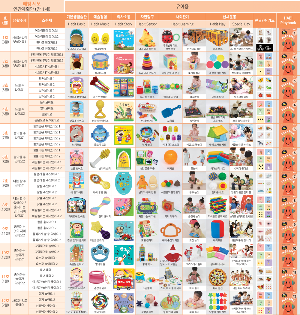 해빛 세모 연간 교육 계획안(만 1세)