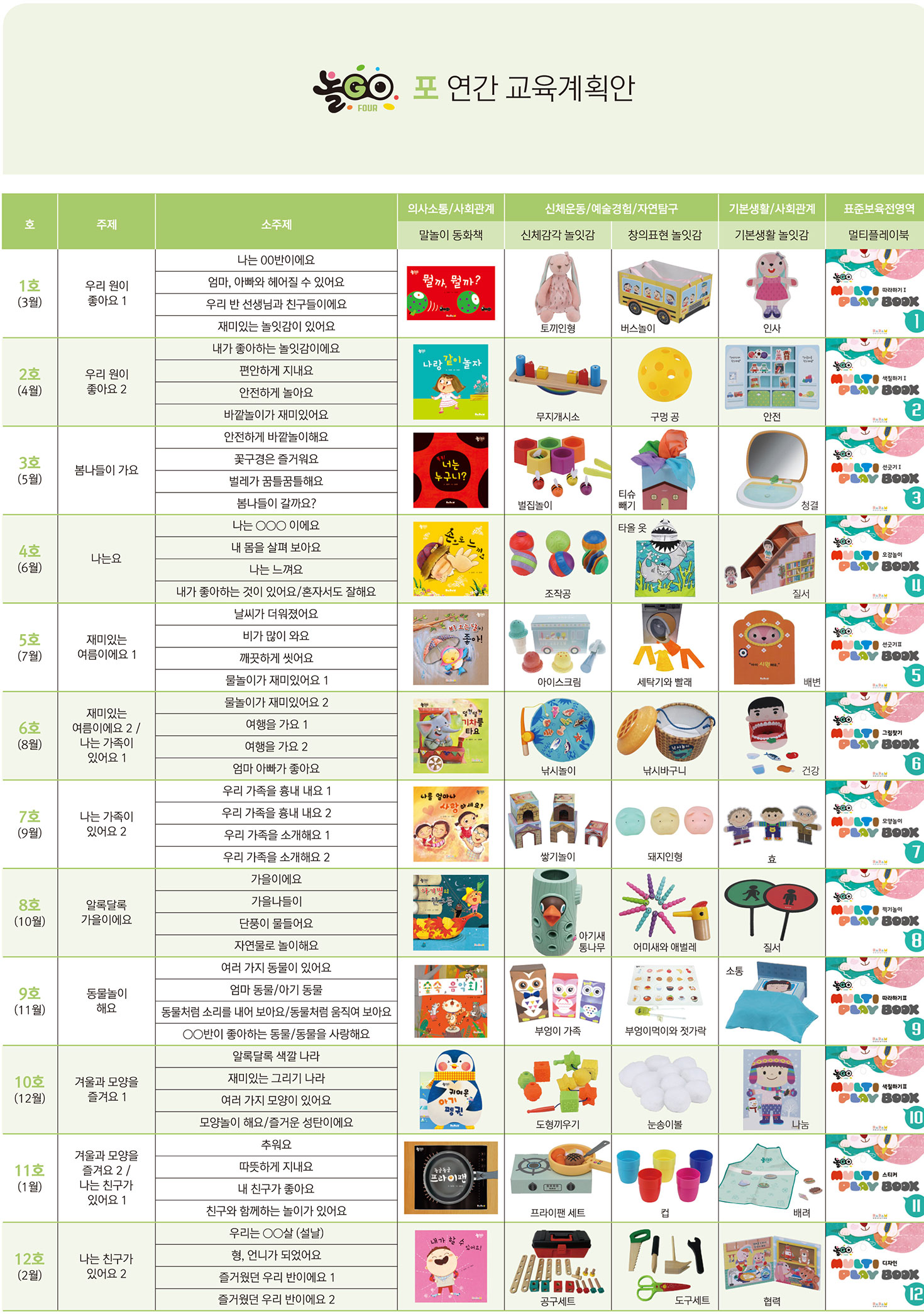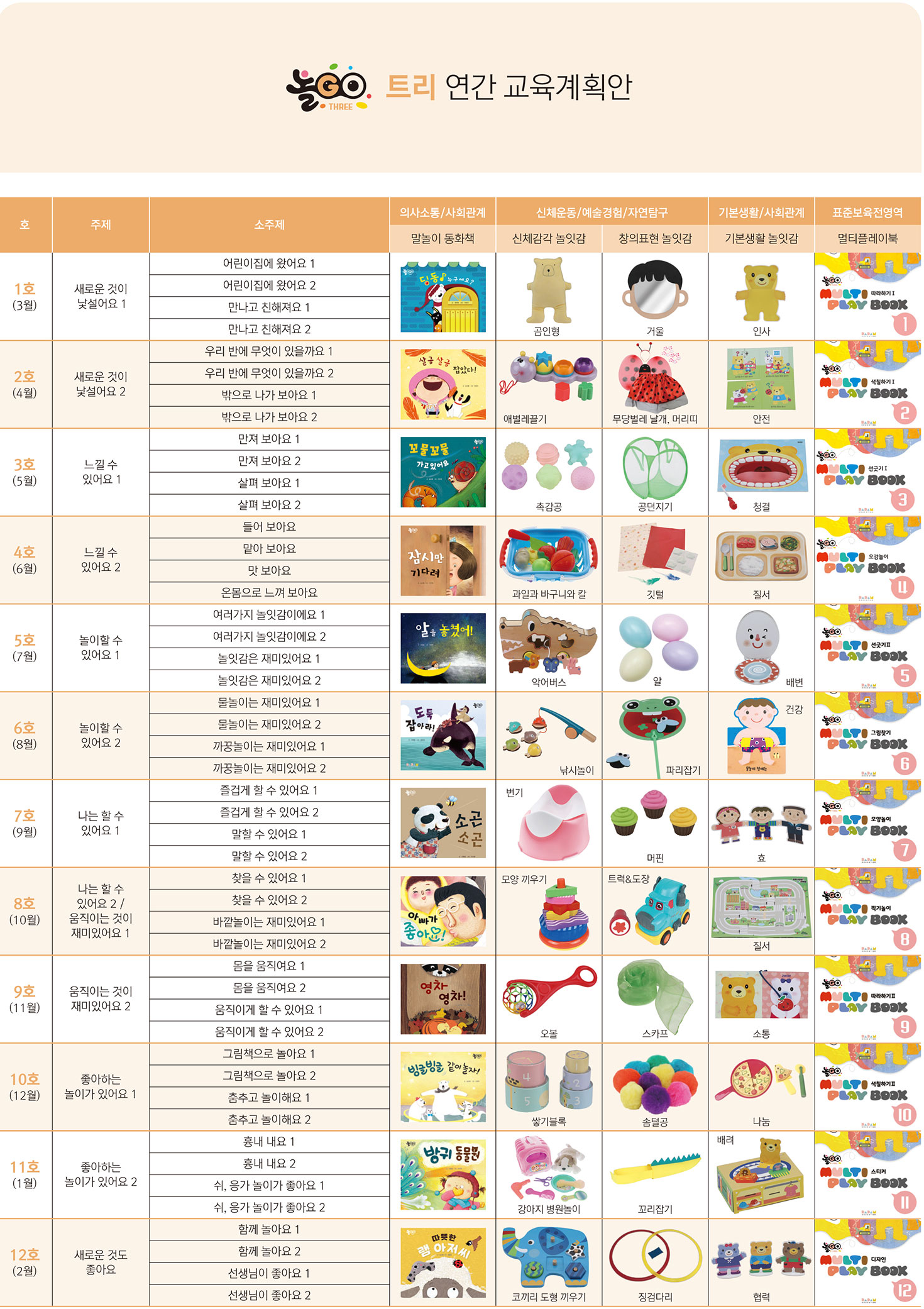 언어 민감기인 만 2세의 영아에게 다양한 놀이와 언어자극을 통하여 영아의 전인발달을 돕고 표준보육과정의 6개 영역에 맞춰 체계적으로 내용을 구성하였습니다.