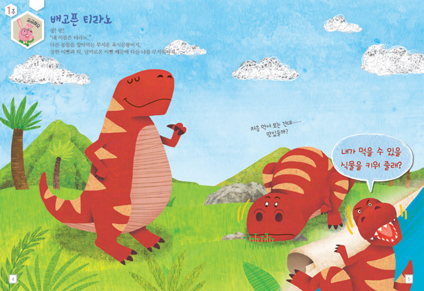 배가 고픈 육식공룡 티라노가 풀을 먹으려고 해요.